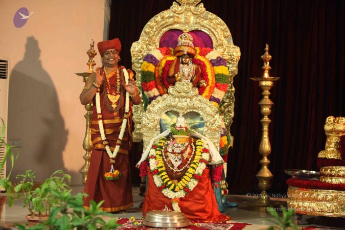 nithyānandeśvara samārambhām nithyānandeśvari madhyamām | asmat āchārya paryantām vande guru paramparām ||