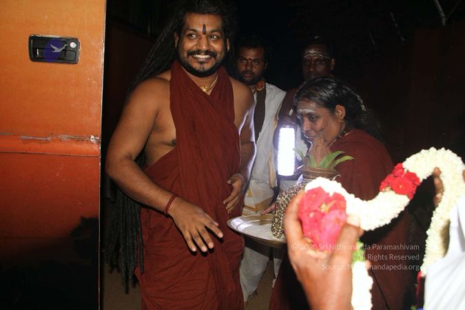 nithyānandeśvara Sadāshiva samārambhām nithyānandeśvari Adi Shakti madhyamām | asmat āchārya paryantām vande guru paramparām ||