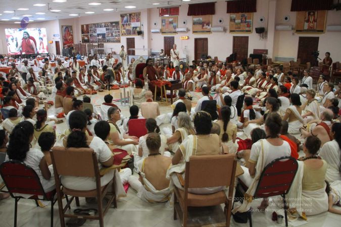The Sanyasies and the delegates sitting in the presence of HDH Nithyananda Paramashivam