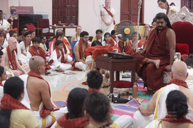 HDH Nithyananda Paramashivam addressing the delegates during the morning satsang