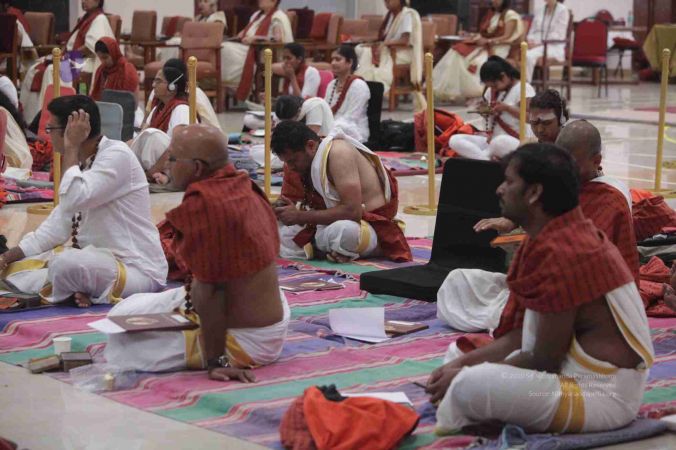 Adheenavasis and Inner Awakening Convention delegates setting up their Pooja Kits to offer their worship at the Lotus Feet of HDH Bhagavan Sri Nithyananda Paramashivam