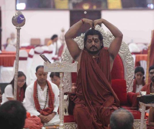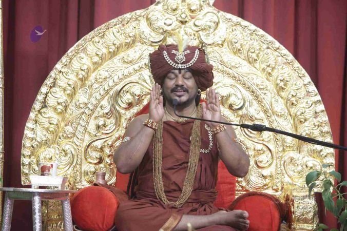 I welcome all of you with My love and respects. I welcome all the Sarvajna Peetha Yajamans, Nithya Satsangis, Sri Mahants, Mahants, Kotharis, Thanedars, devotees, disciples, visitors, YouTube Subscribers, sitting with us through Nithyananda TV and Facebook Live on 100s of Aadheenavasis channels, YouTube Live and through 2-way Video Conferencing having Nayana Deeksha. I welcome all of you with My love and respects.
