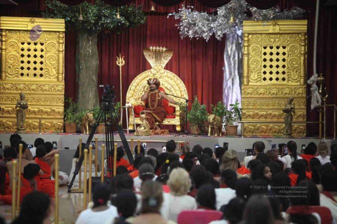 HDH Bhagavan Sri Nithyananda Paramashivam adorning the Simhasana to conduct Mandala Process