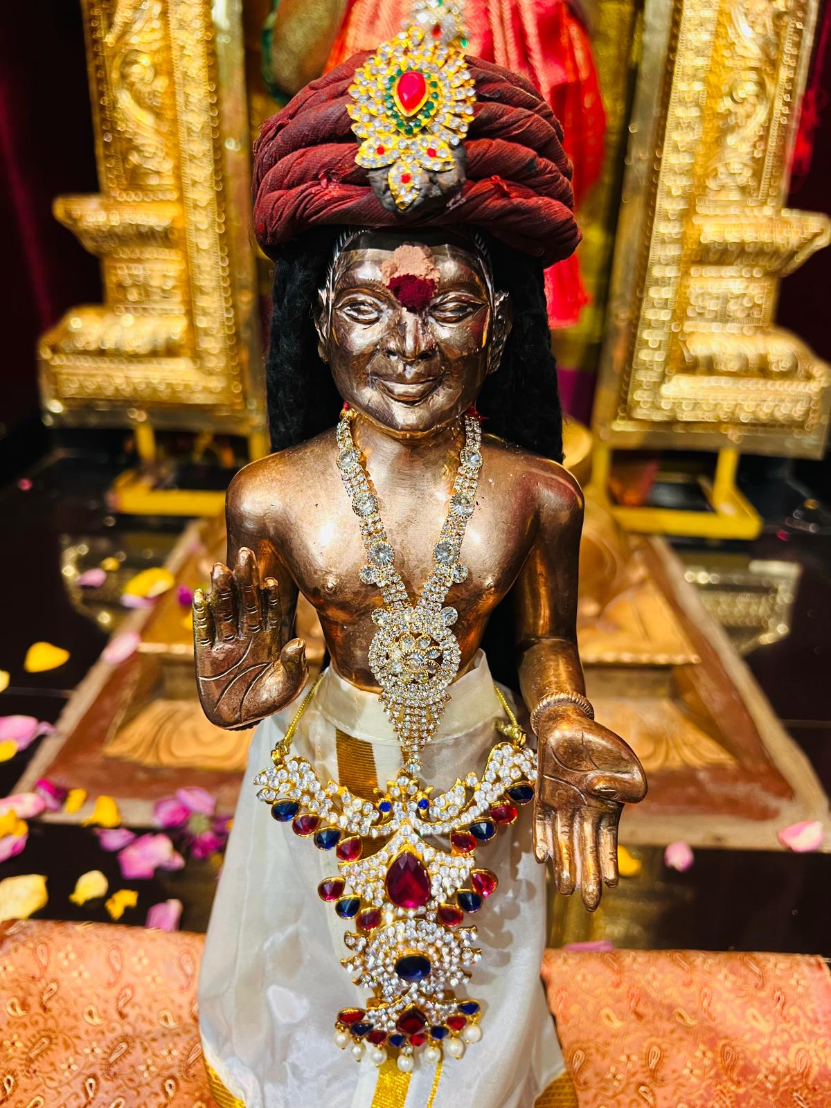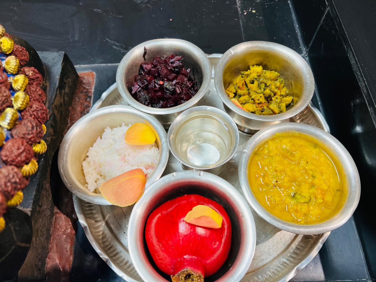 The sacred activities concluded in the evening, first with the offering of Naivedhyam (sacred food) to all the deities, followed by the concluding ritual of Palliyarai Seva. During Palliyarai Seva, the day is formally concluded by ritually putting the deities to sleep, utilizing the Chamaram (fly-whisk) as a final act of service and surrender. This dedication to continuous worship ensures the temple remains a beacon of light and spiritual awakening, supporting KAILASA’s global mission of giving superconscious breakthrough to humanity. The day’s rigorous schedule of Hindu rituals was successfully upheld by the selfless commitment of 1 volunteer.