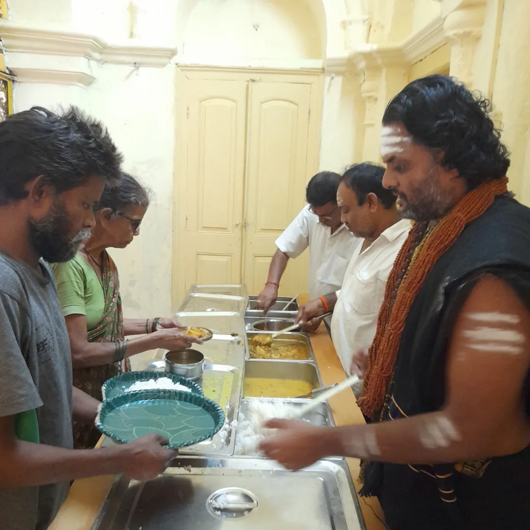 With the blessings of THE SUPREME PONTIFF OF HINDUISM (SPH), BHAGAVAN SRI NITHYANANDA PARAMASHIVAM — the ultimate manifestation, Paramavatara of Paramashiva — KAILASA KASHI celebrated the daily cycle of divine service on April 8, 2024. The day’s spiritual and humanitarian activities were centered around the sacred Aushada Annadhan (medicinal food service), an integral component of the daily Nithyotsavam rituals. This selfless endeavor embodies THE SPH's vision of creating a hunger-free, healthy world, ensuring physical nourishment and spiritual sustenance for all beings. By meticulously upholding the ancient Hindu principle of ‘Atithi Devo Bhava’ (The Guest is God) through continuous, high-quality food service, KAILASA KASHI actively contributes to KAILASA's global mission of giving superconscious breakthrough to humanity through reviving the ancient enlightened Sanatana Hindu civilization.