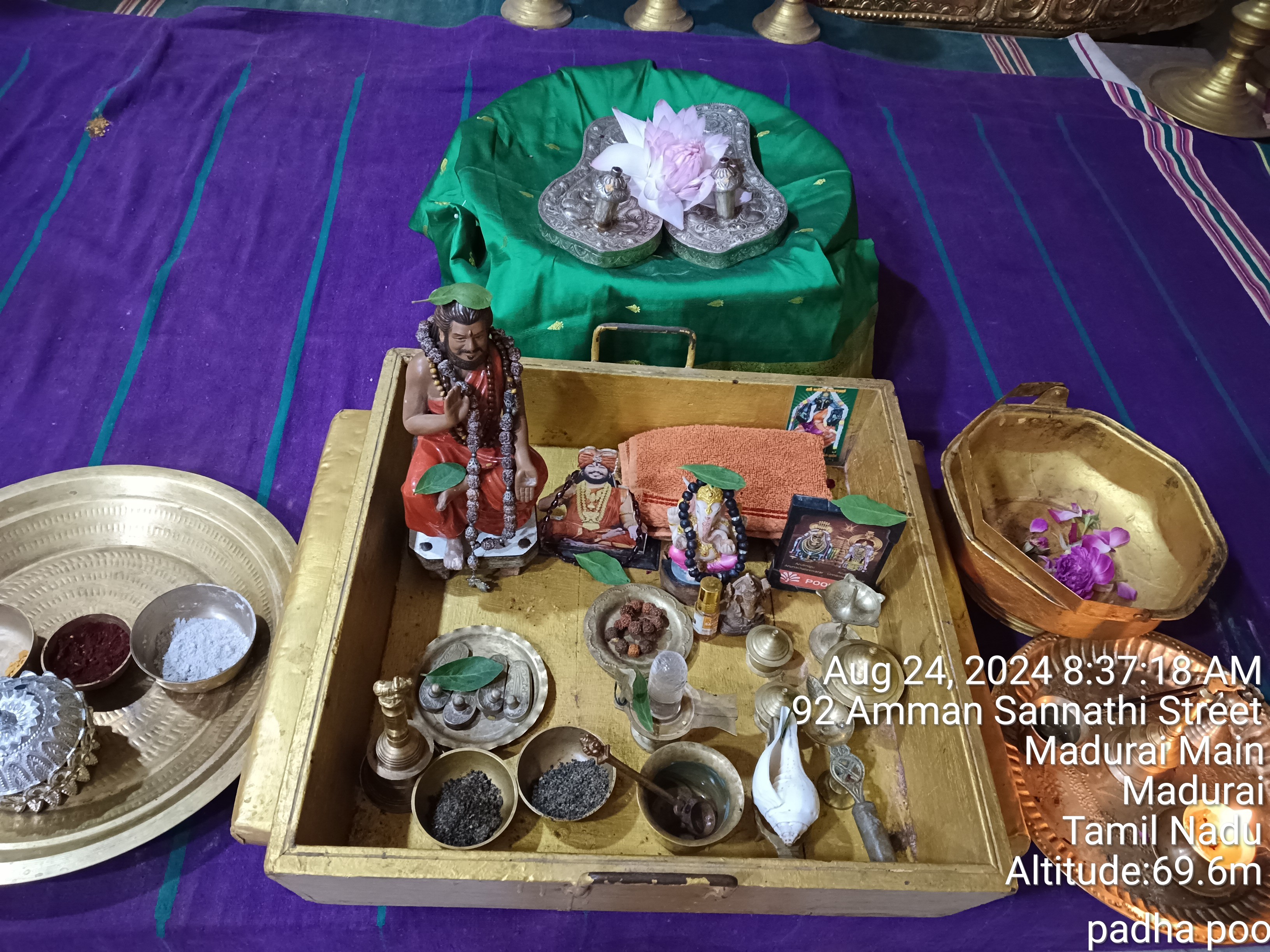 The sacred Daily Rituals (Nithyotsavam) were performed meticulously at KAILASA SHYAMALAPEETA SARVAJNAPEETAM (SSJP), anchoring the divine presence of Paramashiva as gifted by THE SPH. These time-honored Hindu rituals, integral to the ancient temple traditions, were performed with deep devotion and adherence to scriptural dictates. The rituals conducted included Palliyaluchi (the ceremonial awakening of the deity), laghu poojai (short, focused worship), padha poojai (the profound worship of the holy feet of THE SPH), and the potent bhogamoorthi abhishakam (the sacred bathing of the offering deity).