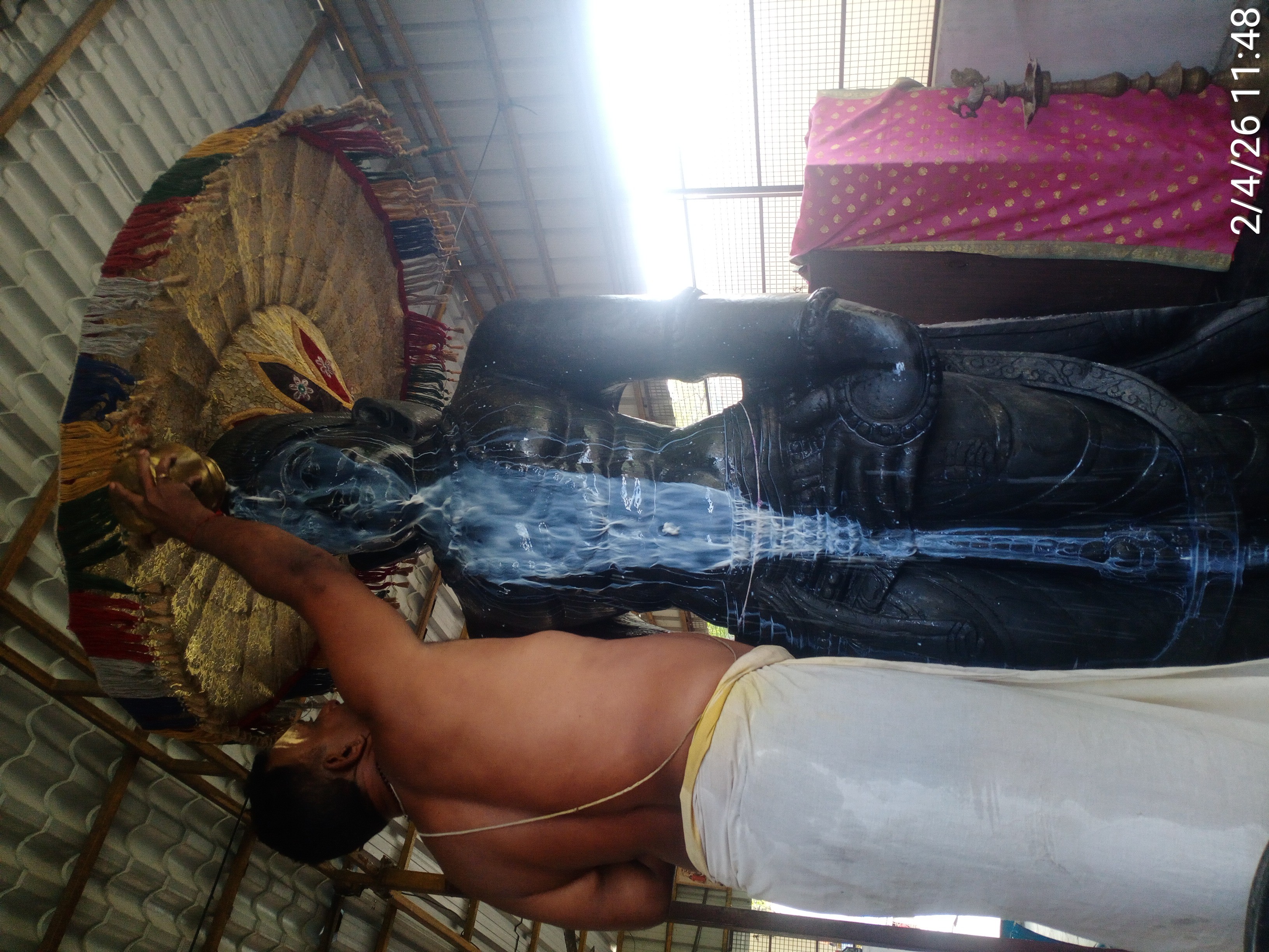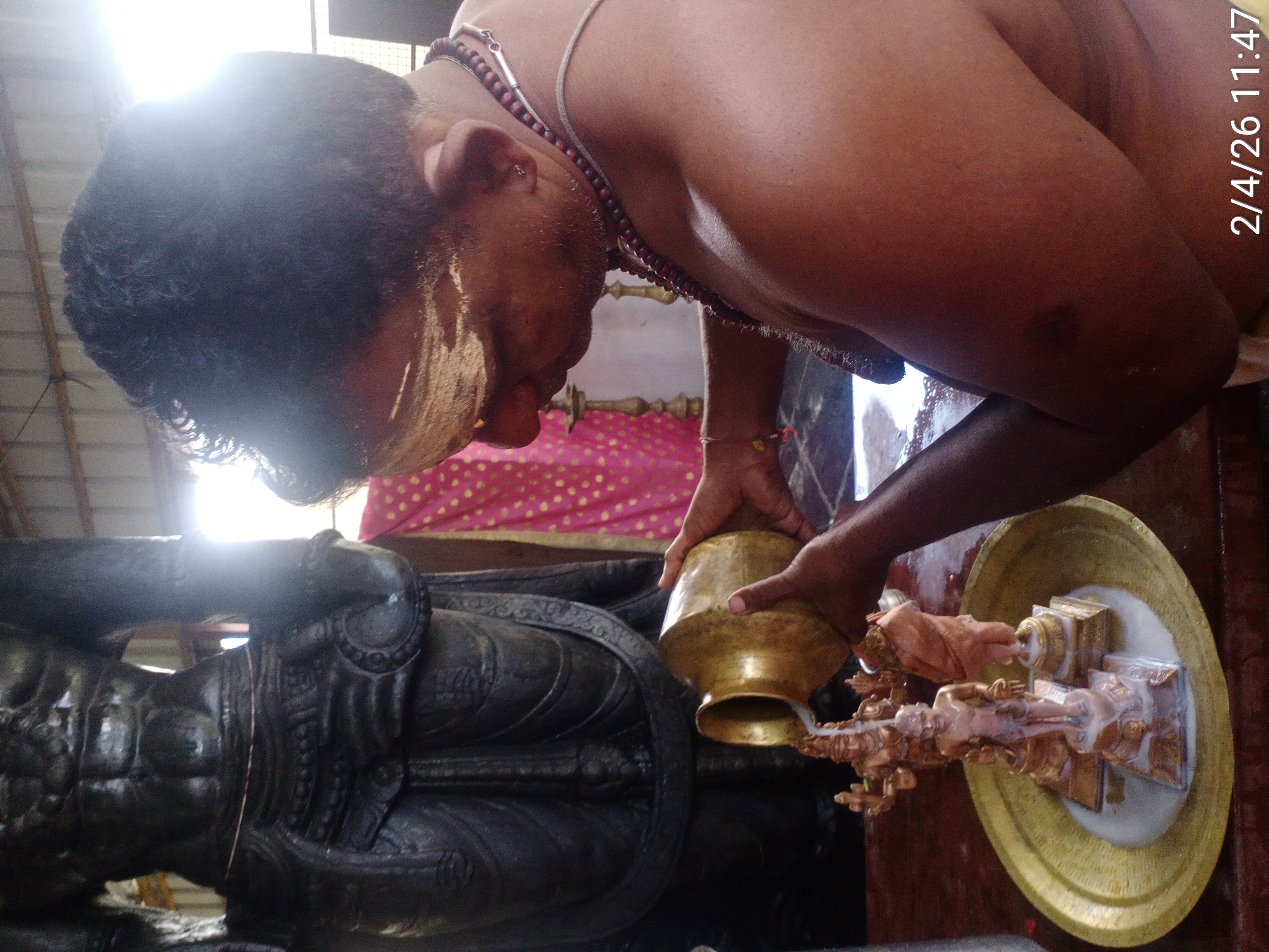 The daily ritual of Abhishekam (sacred bathing) and subsequent Alankaram (divine ornamentation) were performed with deep reverence at KAILASA TRISHULAM as part of the Nithyotsavam (daily festival) schedule. These powerful Hindu rituals serve as a foundational element of worship, allowing the devotee to experience the intense purifying energy of the divine. Through the prescribed offerings and authentic Vedic chants, the deities are invoked, making the space conducive for manifesting the state, space, powers, being and superconsciousness of Paramashiva, as taught by THE SPH.
