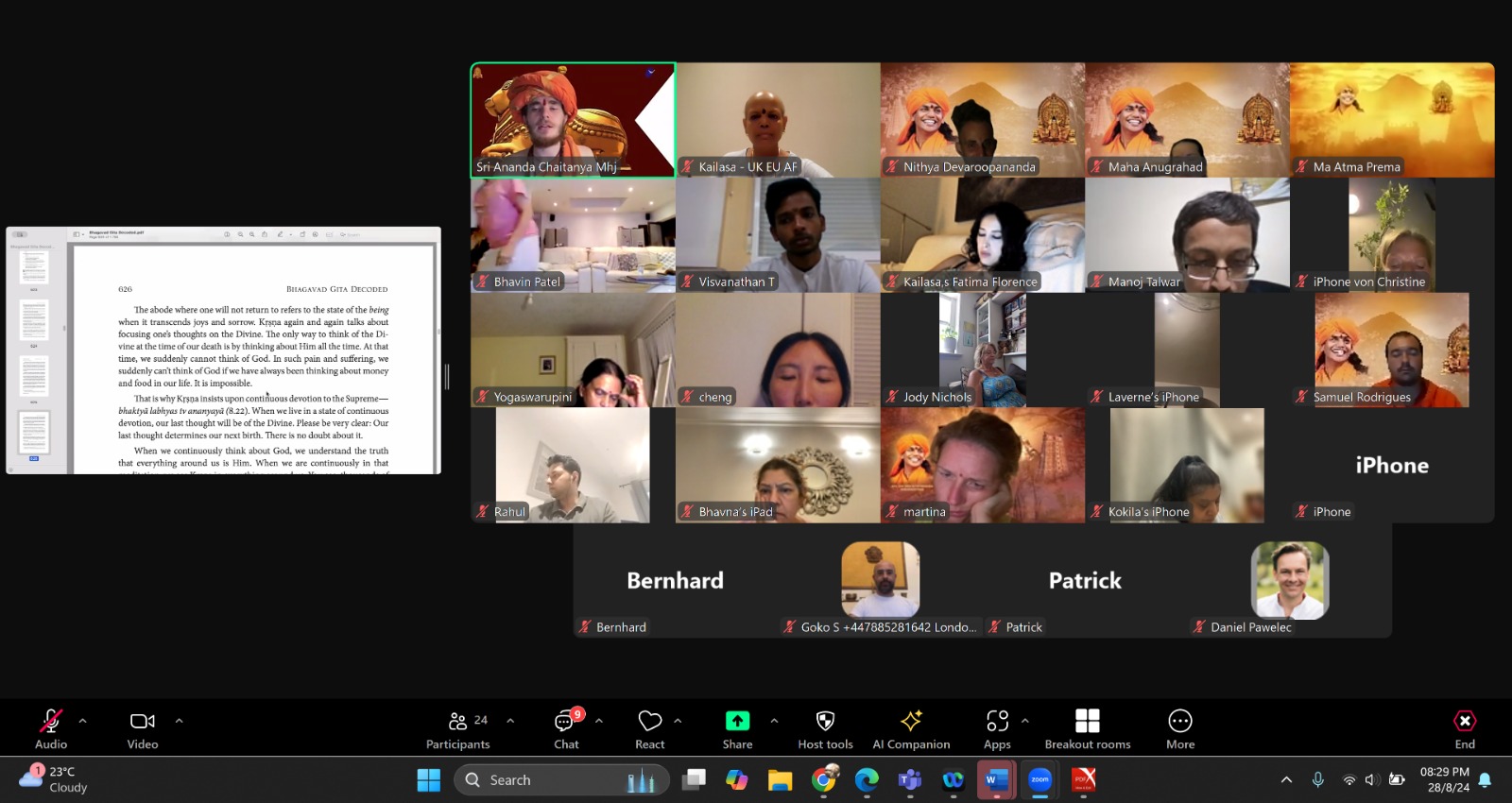 With the blessings of THE SUPREME PONTIFF OF HINDUISM (SPH), BHAGAVAN SRI NITHYANANDA PARAMASHIVAM — the ultimate manifestation, Paramavatara of Paramashiva — KAILASA UNITED KINGDOM organized a profound Bhagavad Gita Decoded Session on 28 July 2024. This auspicious gathering marked a dedicated effort, aligned with THE SPH’s sacred instructions for the holy period of Chaturmasya, to revive the ultimate truths of Sanatana Hindu Dharma. The session provided a deep dive into the cosmic wisdom contained within the *Bhagavad Gita*, enabling 24 participants and 24 dedicated volunteers to connect with THE SPH and manifest the state, space, powers, being and superconsciousness of Paramashiva. This intensive study session served KAILASA's mission of giving superconscious breakthrough to humanity through reviving the ancient enlightened Hindu civilization across the UK.