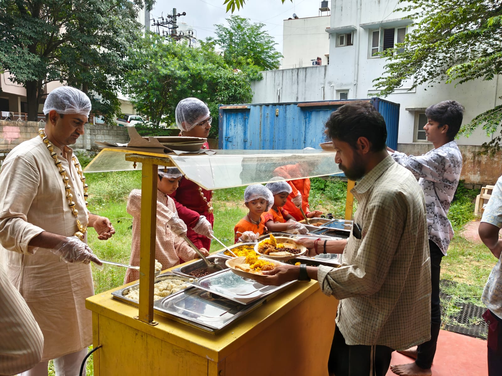 Following the sacred rituals, the central humanitarian activity—Annadan (food service)—was offered at the Uttarahalli temple. This act of offering food, referred to as Anna dann seva, is an ancient Hindu civilizational practice revived by THE SPH as a crucial component of human consciousness awakening. By serving nourishing, organic vegetarian meals, KAILASA fulfills THE SPH’s global humanitarian initiative for food security and nourishment, upholding the vow that no stomach goes hungry, regardless of race, religion, or nationality.