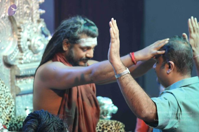 HDH Nithyananda Paramashivam blessing a delegate during the intiantion