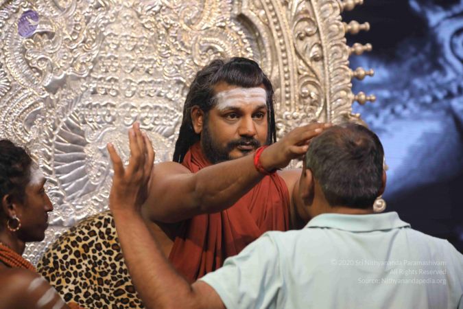 HDH Nithyananda Paramashivam blessings a delegate during the intiantion