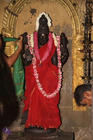 The third body which He assumed to give sugarcane to Stone Elephant; Stone Elephant ate the sugarcane, for that leela He assumed one more body that is there inside the temple under the Samadhi of under the shrine of Ellamvalla Siddhar; under his murthy that third body is there.
