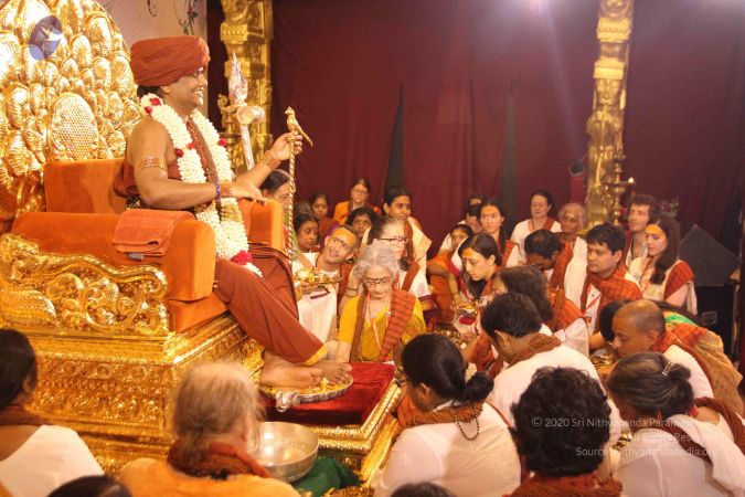 (10:29) We have lot to do to revive this great Vedic Tradition, to move this Dharma Chakra. I invite everyone of you to shoulder this responsibility, to move this Dharma Chakra along with me. (11:10) I think that's it, for now. (11:19) Blessings to all you guys. (11:29) I know, not only you guys will be missing this chair, even I will be missing (11:37) Just turning around and seeing everyone. "Come on, shall we start?" Alright. Let's get ready for Pada Puja and Energy Darshan. Ultimate, but not final; Ultimate, but not last. (12:14) Touch of the Divine, Energy Darshan (12:22) I bless you all. Let you all radiate with Integrity, Authenticity, Responsibility, Enriching, Causing, Living Advaita, the Eternal Bliss. Nithyananda. Thank you. Be Blissful.