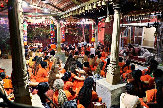 HDH Nithyananda Paramashivam addressing Q & A during courtyard session
