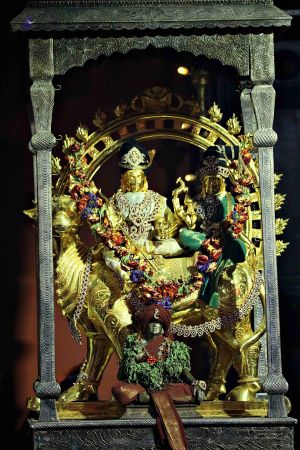 Temple Acharya offering Arathi during Shiva Puja