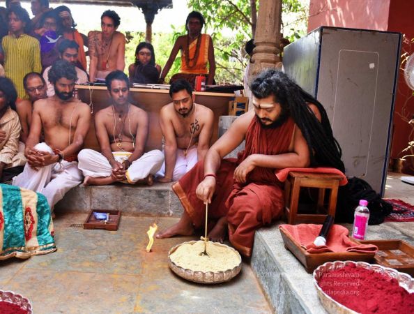 HDH Nithyananda Paramashivam conducting courtyard spiritual alchemy science process