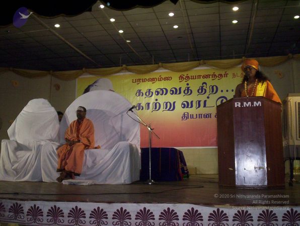 His Divine Holiness Swamiji went on an 'Ananda Ula' (Blissful tour) in various places in Tamilnadu, giving free discourses under the banner 'Kadavai Thira Katru varattum', conducting meditation programs, visiting and energizing homes and visiting temples. People gathered in large numbers everyday to listen to Swamiji's talks on Spirituality and other issues related to everyday life. Following are some of the pictures from the tour at Madurai.